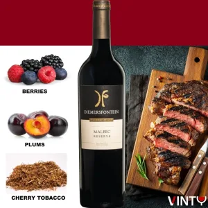 The Diemersfontein Carpe Diem Malbec 2023 is a bold yet elegant expression of Wellington terroir. Part of the estate’s flagship range, this wine reflects the spirit of its founders, David and Sue Sonnenberg, who began their winemaking journey later in life—truly seizing the day.