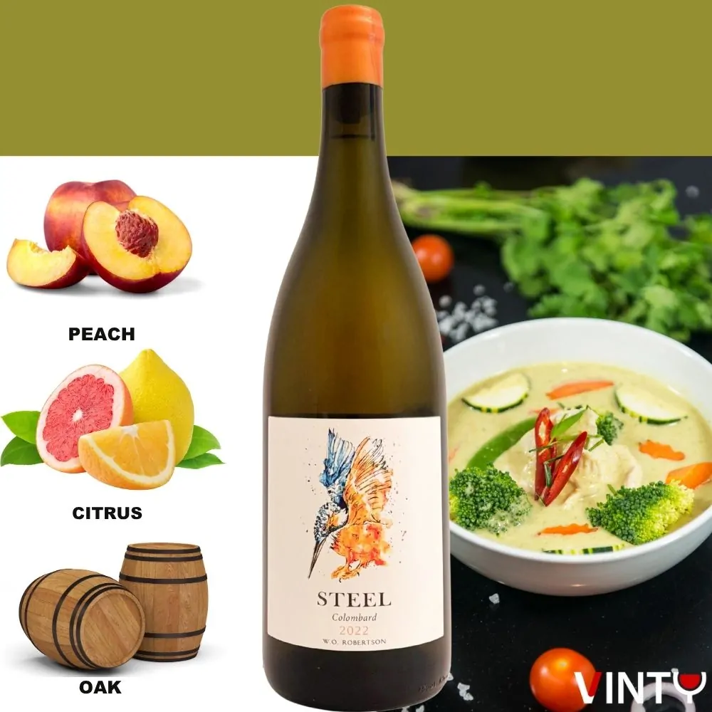 Part of the Lekker Labels, the Steel Wines Colombard 2022 transforms a historically “bulk or blended” varietal into a refined, small-batch wine. Barrel fermented and aged, it showcases ripe citrus, stone fruit, and subtle earthiness — proving that even a “workhorse” grape can become a true darkhorse.