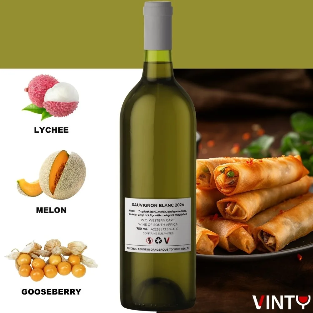 The Sauvignon Blanc 2024 – Stellenbosch is a vibrant and refreshing wine, bursting with tropical flavors of litchi, melon, and gooseberry. Its expressive nose is complemented by crisp acidity and a long, smooth mouthfeel, creating a truly enjoyable drinking experience.