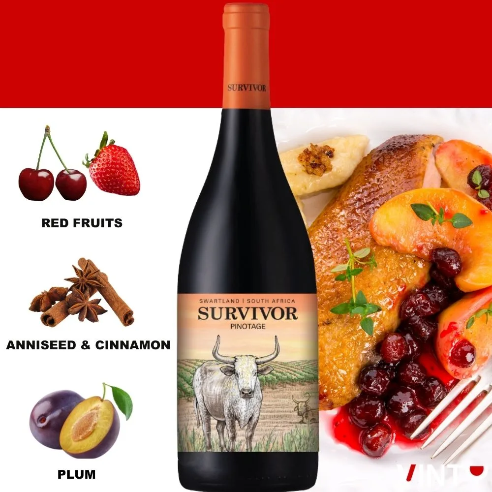 This Pinotage is not only expressive but also versatile. It pairs beautifully with seared duck breast, venison, Indian curries, and aged Gouda. Whether for a dinner party or a quiet evening in, Survivor Terroir Pinotage 2023 delivers bold flavour with refined elegance—making it a standout in any collection.