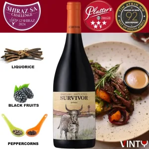 Award-winning and bold, the Survivor Terroir Syrah 2022 ranks among South Africa’s top 12 Shiraz wines. And with one sip, you’ll know why.