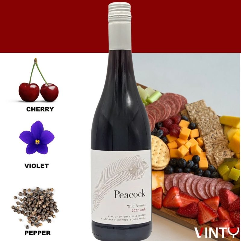 The False Bay Peacock Wild Ferment Syrah 2022 is a wine that celebrates the untamed side of South African Syrah. Fermented with wild yeasts straight from the vineyard, it captures the vineyard’s natural energy and translates it into a wine with character, vibrancy, and a touch of unpredictability.